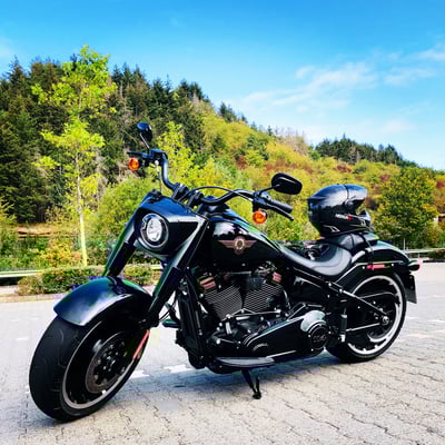 Das Harley-Davidson Fat Boy 30th Anniversary Motorrad in der Lackierung Vivid Black ist auf 2500 Stück limitiert. Aber bei uns kannst Du es mieten, den dicken Jungen mit dem wuchtigen Auftritt in schwarz. Hasta la vista Baby!